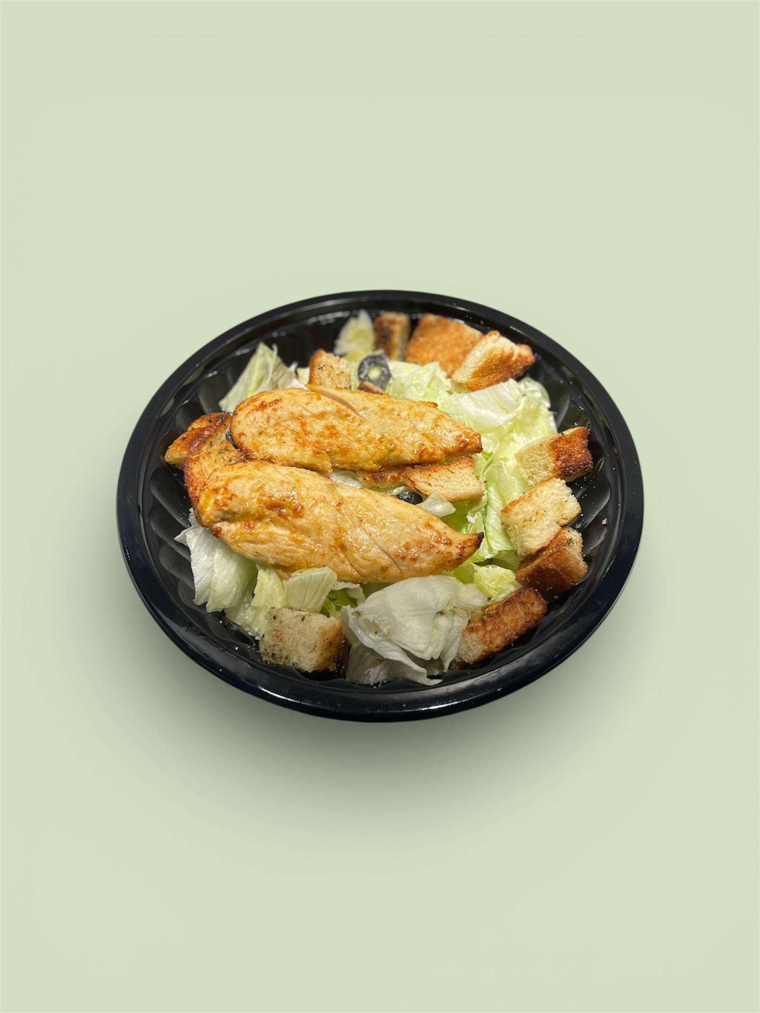 کاهو – فیله مرغ گریل – نان کروتان – پنیر پارمزان – زیتون